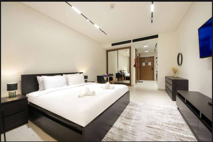 Stay in the heart of Dubai’s vibrant Business Bay district with this sleek and modern 1-bedroom apartment. Located directly on the canal and just 6 minutes from Burj Khalifa and Dubai Mall, it offers the perfect blend of convenience and comfort. Ideal for solo travelers, couples, or business guests, the apartment features a fully equipped kitchen, in-unit laundry, and smart self-check-in. Pet-friendly and connected, it's the ideal base for both short and extended stays.